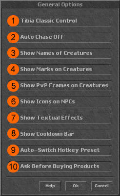 No Patch 10.36 foi adicionado uma nova opção gráfica que identifica a função na qual um NPC está relacionado. Inicialmente eram três balões, porém, posteriormente a CipSoft deixou apenas um balão que serve para identificar NPCs.
